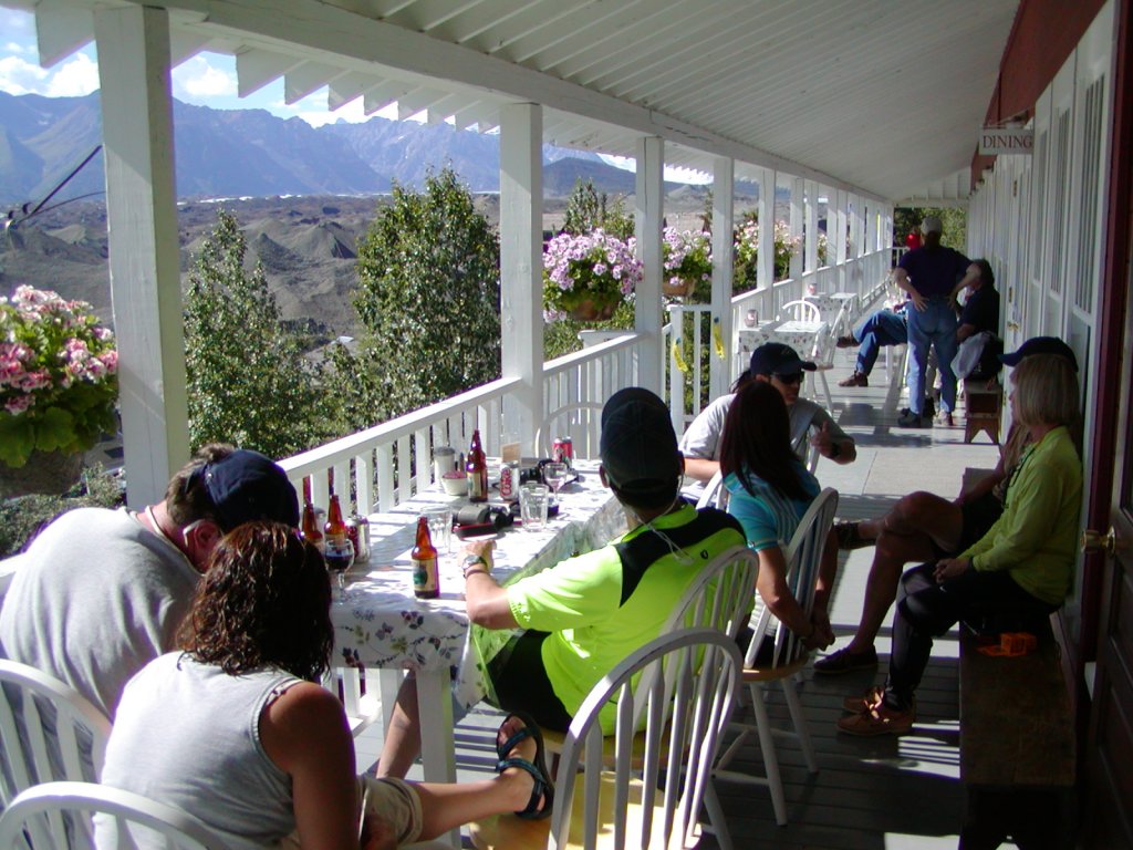 Resting on the front Porch of the Kennicot Glacier Lodge (Enjoying a cold Alaskan Amber Ale).