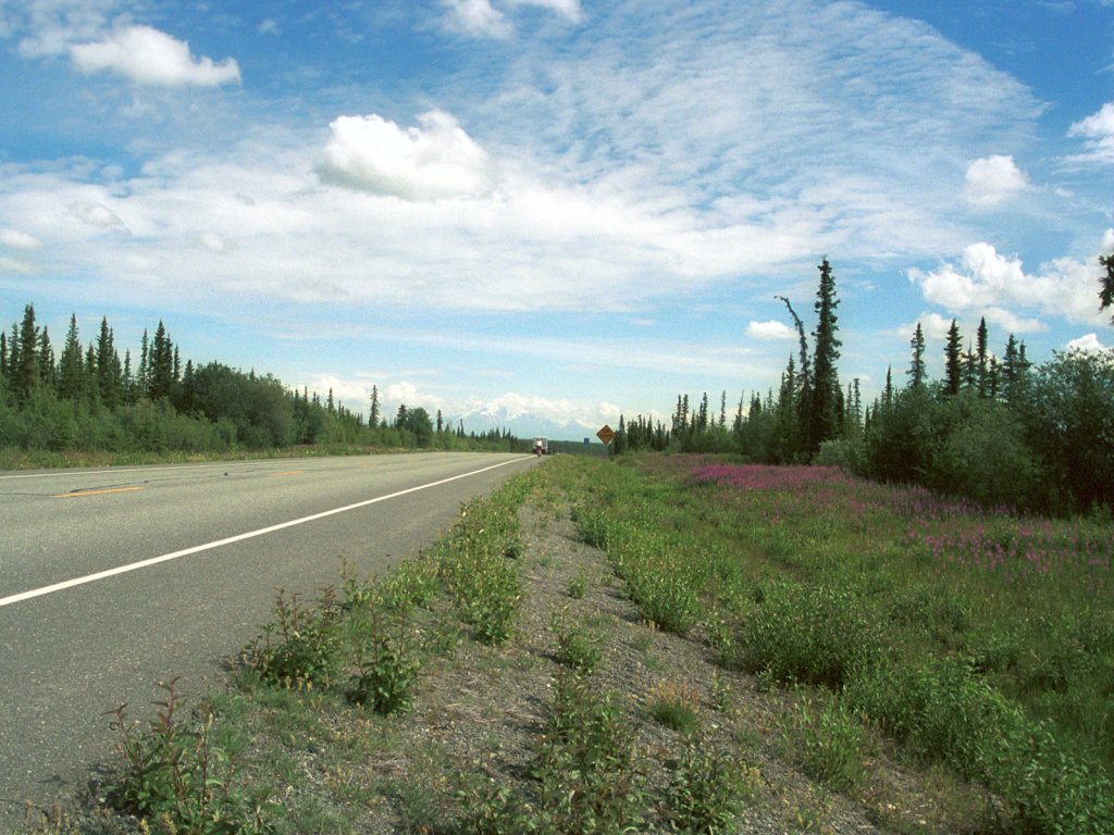 Wild flowers along the road and views of Mt. Blackburn.