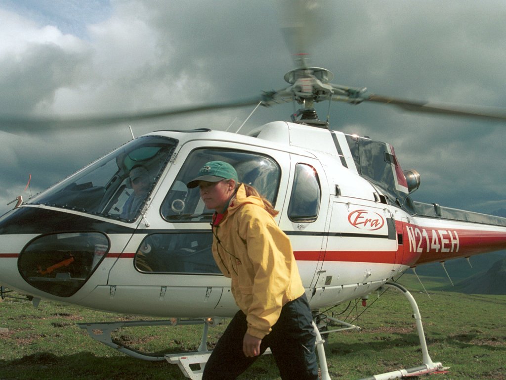 Becky, our guide, prepares to signal the helecopter for takeoff after dropping us off